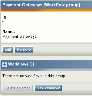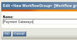 Click the New workflow group button. The New workflow group view will be displayed. Enter a name for the workflow group, such as 'Payment Gateways', then click the OK button.
